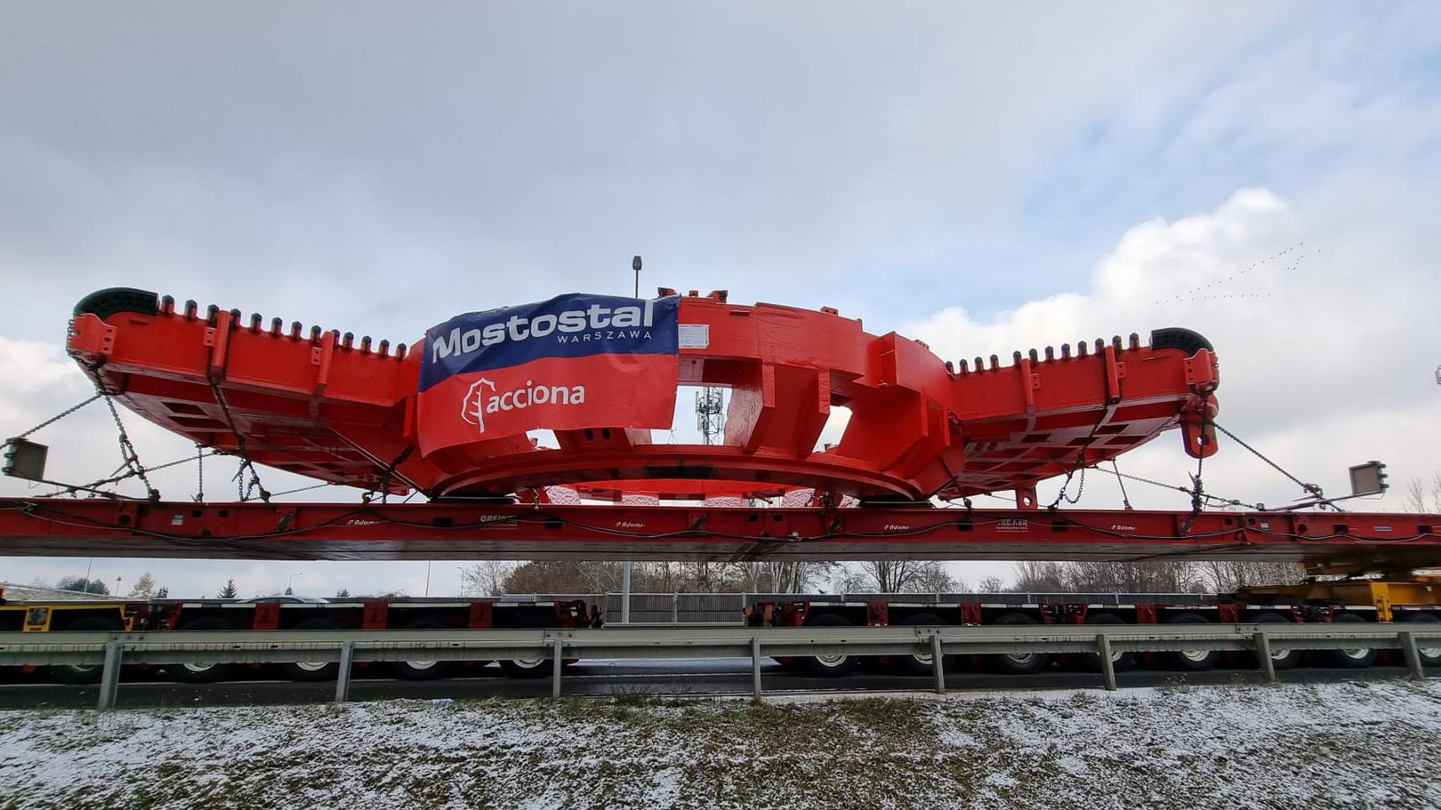 Kolejny transport z elementami maszyny TBM, która już w przyszłym roku rozpocznie drążenie tunelu na odcinku drogi ekspresowej S19 Rzeszów - Babica, jest w drodze. W niedzielę w nocy wjedzie do Rzeszowa. Tym razem przewożony jest napęd główny maszyny oraz elementy jej obudowy. Największa część transportu jest niewiele węższa od tego z pierwszego konwoju, jednak jego waga to około 240 ton! Łącznie waga całego zestawu przewożącego najcięższy ładunek wynosi 499 ton.