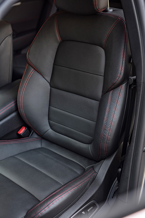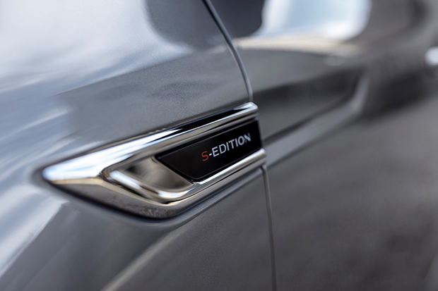 - Tapicerka i deska rozdzielcza są wykończone czarną skórą z czerwonymi przeszyciami, które pojawiają się również na kierownicy, mieszku dźwigni zmiany biegów i płatach drzwi. Specjalne welurowe dywaniki z logo S-Edition, aluminiowe pedały i elementy nawiązujące stylistycznie do aluminium dopełniają całości.