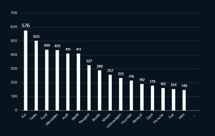 - od stycznia do końca lipca w Polsce zarejestrowano 576 samochodów elektrycznych marki Kia, czyli o 73 egzemplarze więcej niż aut Tesli