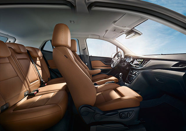 Wnętrze Opla MOKKI X zostało gruntownie przeprojektowane. Nowa deska rozdzielcza ma więcej poziomo ukształtowanych elementów. Bardziej zdecydowana i precyzyjna estetyka podkreśla jej minimalizm i funkcjonalność. W zmodyfikowanej konsoli centralnej umieszczono 7 lub 8 calowy kolorowy ekran dotykowy systemu multimedialnego nowej generacji. Konsola zyskała w ten sposób bardziej elegancką i oszczędną stylistykę — zmniejszono liczbę przycisków, a sterowanie wieloma funkcjami przeniesiono na pojemnościowy wyświetlacz. Ponadto centralny wyświetlacz informacyjny pomiędzy zegarami cechuje ulepszona czytelność dzięki nowym, wyraźnym ekranom o przekątnej 3,5” (monochromatyczny) lub 4,2” (kolorowy) i podświetleniu białymi diodami.