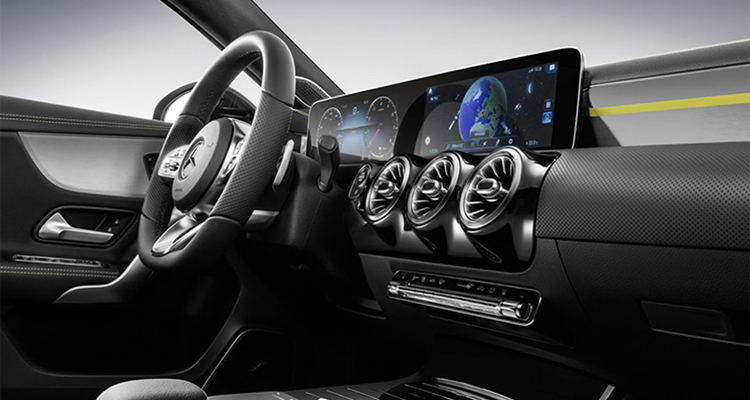 Architektura wnętrza oraz układy obsługi i wyświetlania nowej Klasy A są wyjątkowe wśród kompaktowych aut. Deska rozdzielcza dzieli się na dwie trójwymiarowe, poziome sekcje: jej dolna część jest w wyraźny sposób oddzielona od górnej i wydaje się swobodnie unosić przed tablicą przyrządów. Efekt ten potęguje opcjonalne nastrojowe oświetlenie.