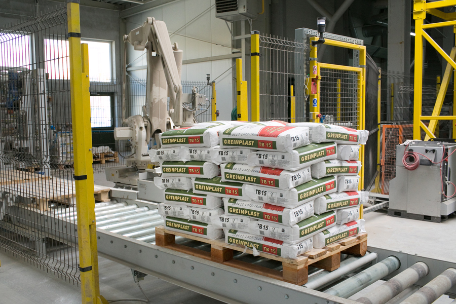 Tak, cały proces produkcyjny jest w pełni automatyczny, ale oczywiście wszystko odbywa się pod nadzorem człowieka, po to, by w przypadku jakichkolwiek błędów, operator mógł je skorygować. Prowadzony jest też pełny zapis procesu produkcji. Całkowicie automatyczne jest również dozowanie dodatków chemicznych, czyli tego, co decyduje, że dany wyrób będzie zaprawą tynkarską, zaprawą klejową albo lepszą zaprawą klejową niż konkurencyjne zaprawy. Niezwykle istotna jest kwestia dokładności ważenia. Waga na linii do produktów „wyrafinowanych” ma możliwości naważania 150 kg dodatków chemicznych, a jej dokładność wynosi 10 dag. Przy surowcach masowych, czyli spoiwach, piaskach, kruszywach itp., gdzie jedna połówka wagi ma możliwość naważania 2 ton, dokładność wynosi 2,5 kg.