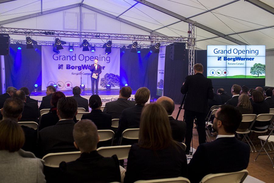 Jak na innowacyjną firmę przystało oficjalne otwarcie było super nowoczesne. Tradycyjne przecięcie wstęgi zastąpił odczyt kart czipowych, które w czytniki wsunęli przedstawiciele zarządu firmy. W ten sposób BorgWarner Poland oficjalnie otwarł dwie potężne inwestycje – nowy zakład produkcyjny i centrum techniczne, które tworzą tzw. BorgWarner Poland – Rzeszów Campus. W uroczystości wzięli udział przedstawiciele lokalnych władz samorządowych oraz przedstawiciele BorgWarner Inc., który siedzibę ma w Michigan w USA a europejskie filie w Arcore we Włoszech oraz Tulle we Francji i w Monako.
