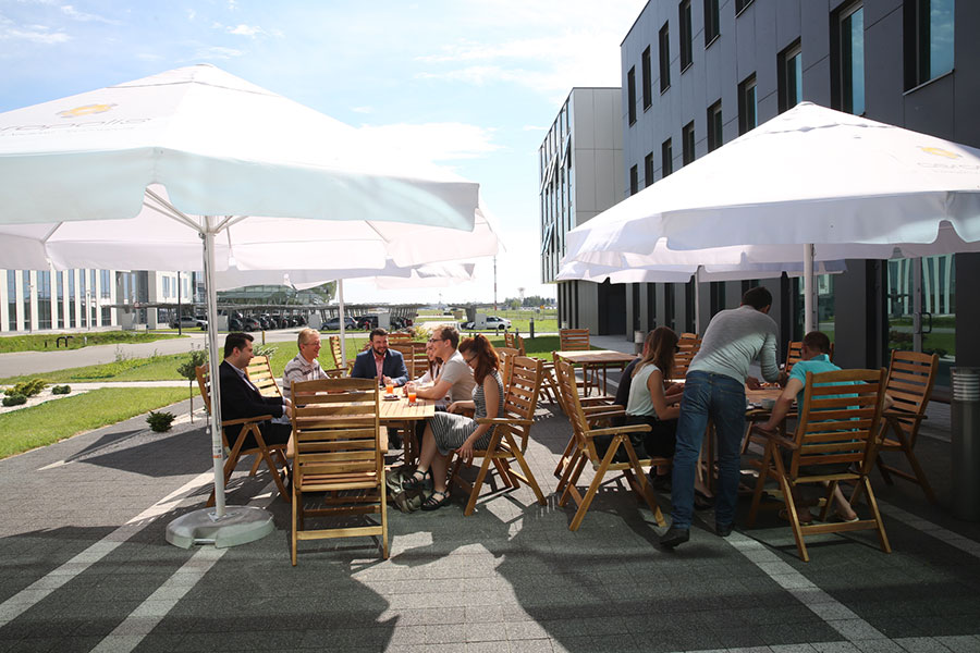 Ogródek powstał po to, by nie ograniczać pracowników firm skupionych w Inkubatorze Technologicznym tylko do biur, sal konferencyjnych czy hal produkcyjnych. Mimo że w budynkach Inkubatora są pomieszczenia, gdzie mogą w spokoju zjeść np. drugie śniadanie, integrować się lub porozmawiać na tematy biznesowe, RARR S.A. zdecydował się zorganizować miejsce mniej formalne. Ogródek Aeropolis to kilka stolików z parasolkami i wygodnymi krzesłami. Przedsiębiorcy mogą tu spożywać posiłki, spędzać przerwy w pracy, relaksować się i rozmawiać. Ponieważ działa tu Wi-Fi, mogą również wziąć ze sobą laptopy i pracować na świeżym powietrzu - taka zresztą jest idea, która przyświecała otwarciu ogródka.