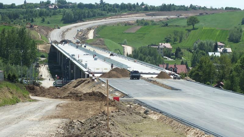 Jeśli chodzi o branżę drogową, wykonawca prowadzi prace związane z konstrukcją nawierzchni - podbudowa z kruszywa (wykonano około 80%), warstwy z podbudowy asfaltowej (wykonano około 60%) oraz warstwy wiążącej (około 20%). Trwają prace związane z umocnieniem rowów, humusowaniem skarp nasypów i wykopów. Na drogach dojazdowych trwają prace związane z ulepszaniem podłoża. Do końca kontraktu wykonawca zrealizuje konstrukcję nawierzchni na drogach dojazdowych, nasadzenia drzew i krzewów w ilości około 6000 szt., montaż wypełnień ekranów akustycznych, ogrodzenie, a także wykonanie oznakowania poziomego i pionowego.