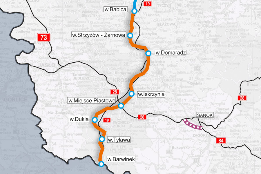Przetarg obejmuje wykonanie koncepcji programowej z pełnym rozpoznaniem geologicznym budowy drogi ekspresowej S19 wraz z infrastrukturą techniczną, budowlami i urządzeniami budowlanymi. Przetarg podzielono na cztery zadania: Babica-Domaradz (ok. 23,45 km), Domaradz - Miejsce Piastowe (ok. 22,70 km), Miejsce Piastowe- Dukla (ok. 10,40 km) oraz Dukla - Barwinek (ok. 18,335 km)