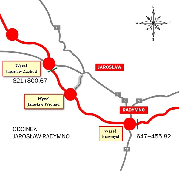 W poniedziałek udostępniono do ruchu kolejny odcinek autostrady A4 na Podkarpaciu: Jarosław Zachód – Przemyśl. Jak poinformowała nas Joanna Rarus, rzecznik prasowy rzeszowskiego oddziału Generalnej Dyrekcji Dróg Krajowych i Autostrad, Wojewódzki Inspektor Nadzoru Budowlanego wydał decyzję zezwalającą na dopuszczenie do ruchu całego, 25-kilometrowego odcinka. Jednak w pierwszej kolejności został oddany do ruchu 18-kilometrowy fragment od węzła Jarosław Wschód (okolice Pawłosiowa) do węzła Przemyśl (skrzyżowanie z drogą krajową nr 77, okolice Radymna). Natomiast oddanie do ruchu fragmentu od węzła Jarosław Zachód do węzła Jarosław Wschód uzależnione jest od zakończenia budowy węzła Jarosław Zachód realizowanego w ramach sąsiedniego kontraktu Rzeszów – Jarosław. Planowane jest to w III kwartale br.