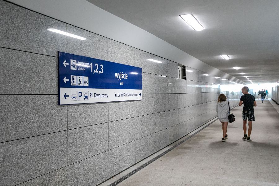 Także w sierpniu udostępniono 140-metrowe przejście podziemne (wcześniej była oddana jedynie część łącząca 1 i 2 peron), którym można dostać się do peronów oraz swobodnie poruszać się między Śródmieściem a osiedlem 1000-lecia. Obiekt ten zastąpił zabytkową, wąską kładkę nad torami i zwiększył bezpieczeństwo w przemieszczaniu się. Tunel jest jasny i przestronny. Jego budowa kosztowała 16 mln zł.