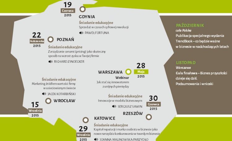 W okresie od czerwca do października, w 5 miastach Polski organizowany jest cykl śniadań biznesowych z udziałem ekspertów m.in. Pawła Fortuny, Jacka Kotarbińskiego, Richarda Zinoeckera, Sergiusza Sawina oraz Joanny Malinowskiej-Parzydło. Każdemu spotkaniu  przewodzi temat wiodący w zakresie: zarządzania ceną, sprzedaży w czasach cyfrowej rewolucji, innowacji w modelu biznesowym, marketingu w sieci czy atrakcyjności marki dla generacji X Y Z. W Rzeszowie odbędzie się drugie śniadanie biznesowe, na którym wystąpi Sergiusz Sawin i opowie o rewolucji modeli biznesowych oraz rozwoju własnej działalności. Śniadanie odbędzie się w godz. 9:00-12:00, w hotelu, ul. Majora Wacława Kopisto 1.