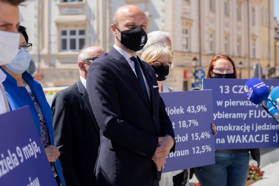 - W sobotę było 10 zachorowań w Rzeszowie, a w dniu planowanych wyborów, w niedzielę, 9 maja w Rzeszowie zachorowały 2 osoby. Prowadzący w sondażach i 2 osoby chore w 200 tys. mieście. Tak wyglądają argumenty w sprawie wyborów – wyliczał Fijołek.