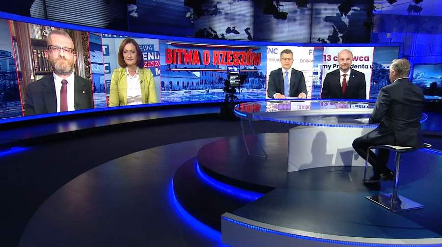 W sobotę w TVN24 odbyła się druga debata z kandydatami na prezydenta Rzeszowa: Ewą Leniart, Konradem Fijołkiem, Marcinem Warchołem i Grzegorzem Braunem. I… widać, że do wyborów został już tylko tydzień. Kandydaci nie unikają ostrych pytań i osobistych przytyków, a najbardziej dostaje się Konradowi Fijołkowi, który jest liderem sondaży. Co jednak najbardziej zdumiało komentatorów, to Marcin Warchoł zarzucający Konradowi Fijołkowi, że bierze pensję od marszałka z PiS, a jednocześnie atakuje Zjednoczoną Prawicę. Jak tłumaczyła prof. Renata Mieńkowska-Norkiene z Uniwersytetu Warszawskiego, to tak jakby pieniądze samorządowe były prywatnymi pieniędzmi partyjnymi - w rzeczywistości pochodzą z podatków wszystkich obywateli.
