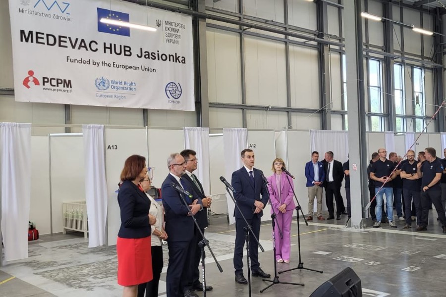 Minister zdrowia Adam Niedzielski, komisarz ds. zarządzania kryzysowego Komisji Europejskiej Janez Lenarcic, minister zdrowia Ukrainy Wiktor Laszko i wojewoda podkarpacki Ewa Leniart otworzyli w czwartek Medevac Hub Jasionka. Pacjenci, pod opieką służb medycznych, będą tu czekać na transport do innego państwa.