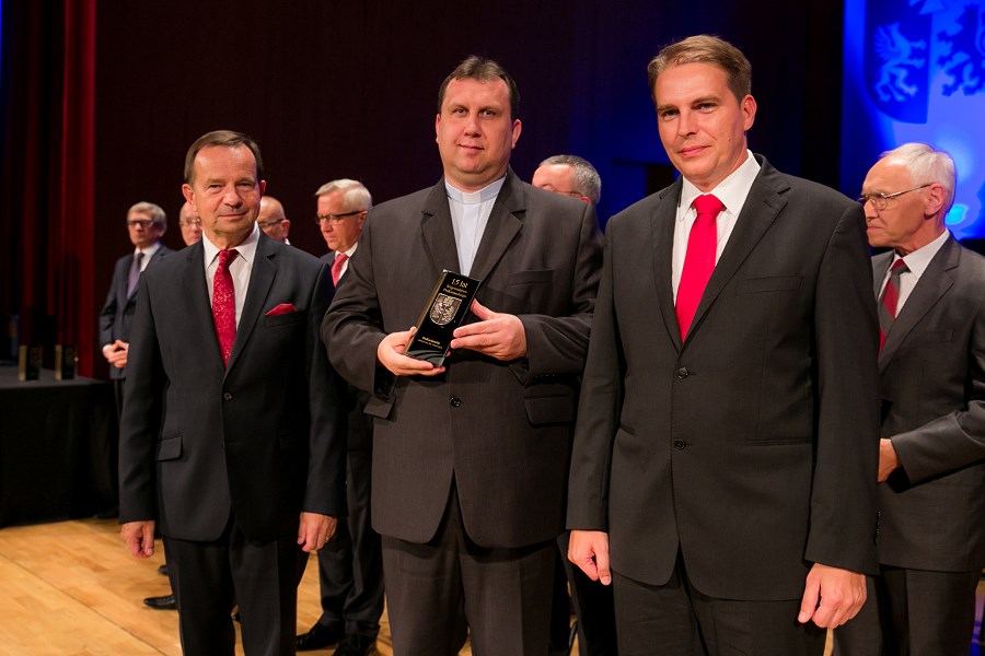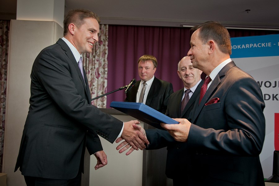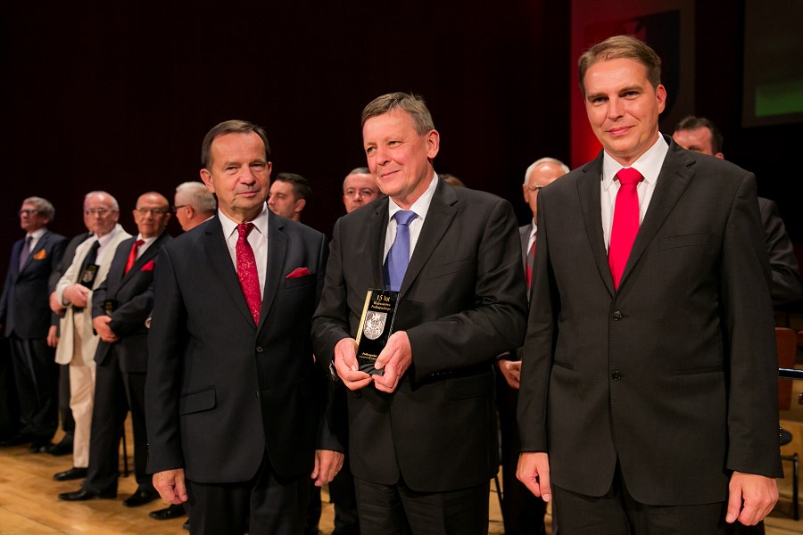 Od lewej: Władysław Ortyl, marszałek województwa; prof. Tadeusz Lulek, pierwszy rektor UR; Sławomir Miklicz, przewodniczący sejmiku. Fot. Tadeusz Poźniak