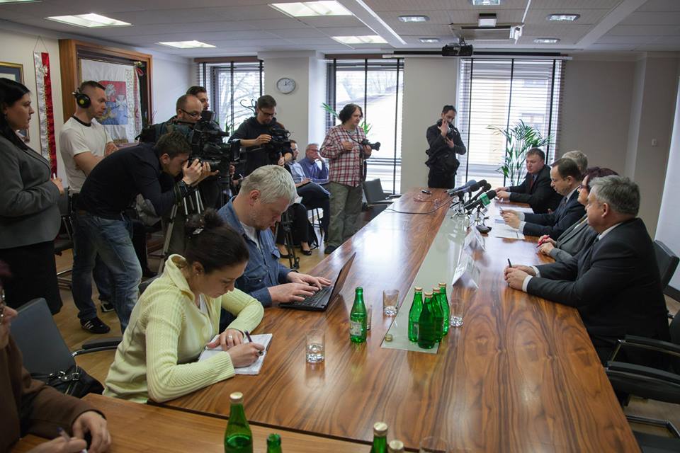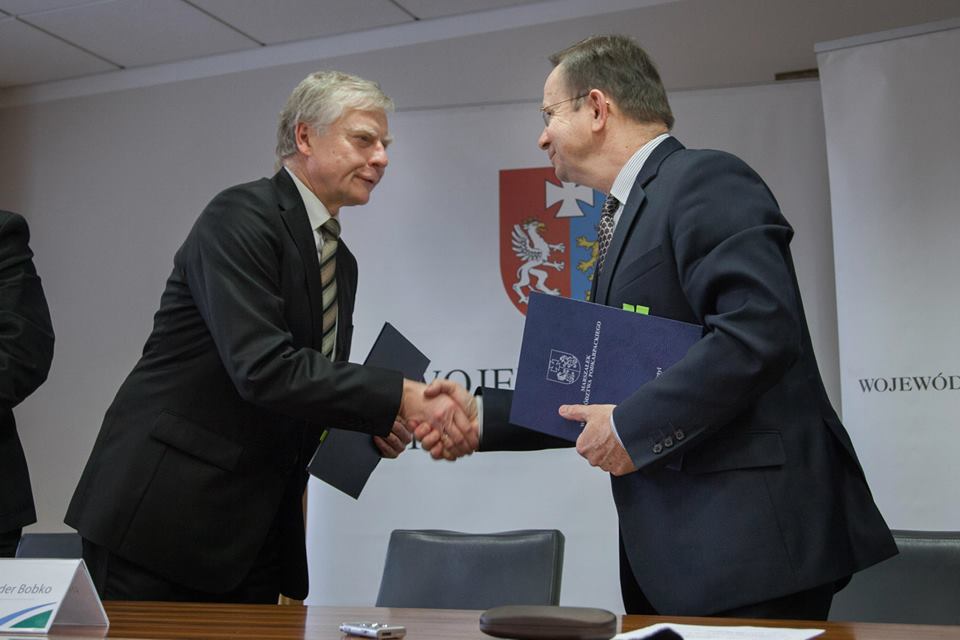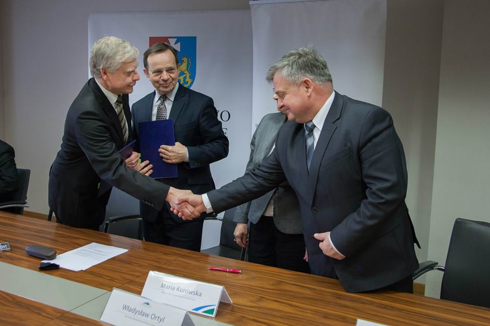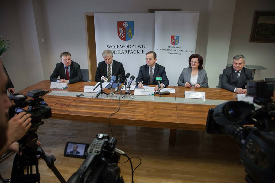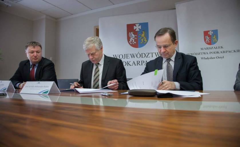 od prawej: marszałek Władysław Ortyl, prof. Aleksander Bobko, rektor UR, Tomasz Leyko, rzecznik marszałka / źródło: UMWP
