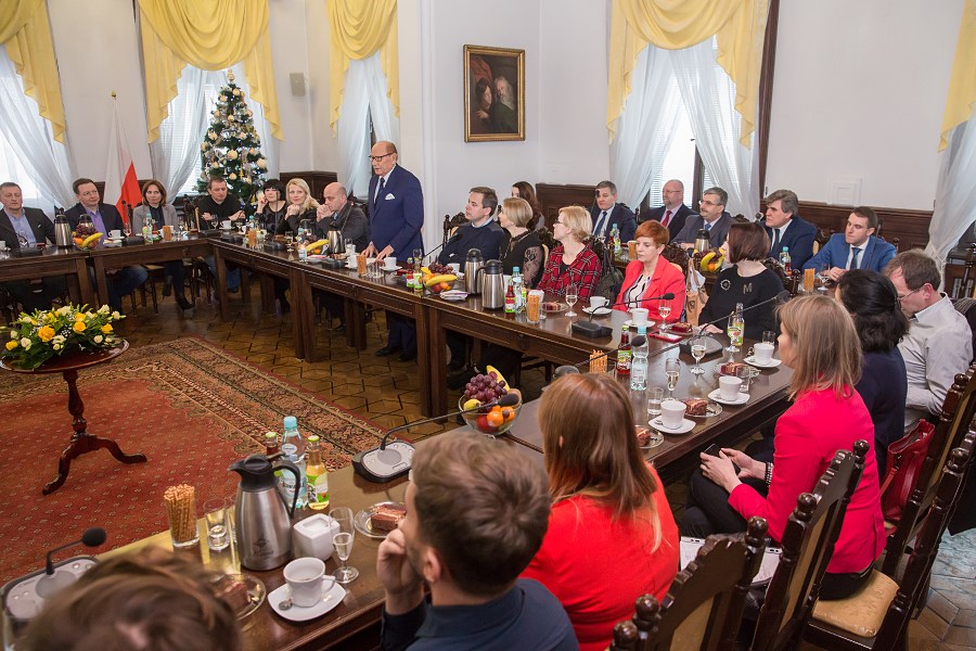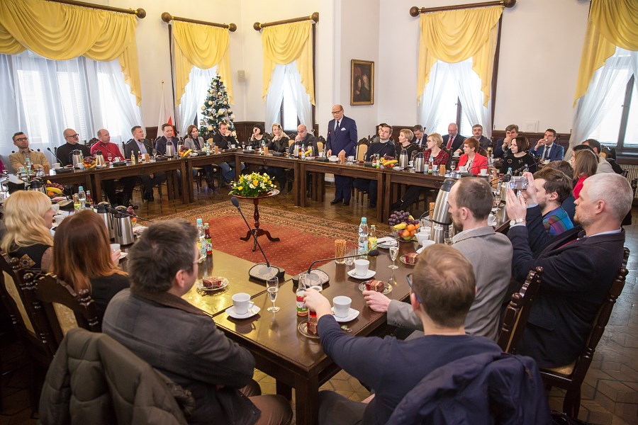 Tadeusz Ferenc, prezydent Rzeszowa oraz jego najbliżsi współpracownicy spotkali się w czwartek w rzeszowskim Ratuszu z przedstawicielami podkarpackich mediów na świąteczno - noworocznym spotkaniu. To już doroczna tradycja, którą podtrzymują także marszałek województwa oraz wojewoda podkarpacka.