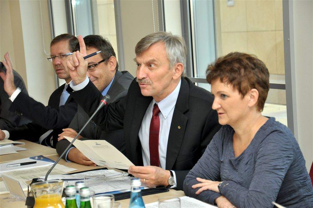 Prof. dr hab. Bronisław Marciniak Przewodniczący KRUP, Rektor Uniwersytetu im. Adama Mickiewicza podczas konferencji prasowej wprowadził nowe pojęcie: „konserwatywna innowacyjność w klasycznych uniwersytetach polskich” w odniesieniu do zmian, które zaszły w szkolnictwie wyższym w ostatniej dekadzie. Najważniejsze z nich to: skutki przejścia od kształcenia elitarnego do masowego w warunkach ograniczeń finansowych i oddziaływań rynkowych. Wpływ na to miała rewolucja technologiczna i zmiana kulturowa w sposobach komunikowania się ludzi, wpływających w istotny sposób na metodykę i formę współpracy naukowej oraz kształcenia na poziomie wyższym. „Przemiany w otoczeniu szkół wyższych rodzą wyzwania dla uczelni” – mówił Rektor UR. W programie pobytu Rektorzy zwiedzali też Muzeum – Zamek w Łańcucie.