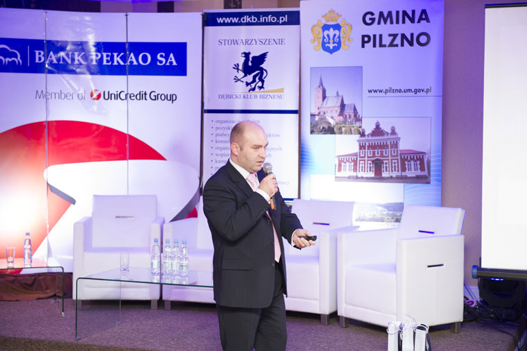 Jednym z organizatorów wydarzenia był Bank PEKAO SA oddział w Dębicy, w którego imieniu gości przywitał - Roman Dec - Dyrektor ds. klienta biznesowego - „Jest duża doza niepewności wśród przedsiębiorców o przyszłość, o możliwości rozwoju, o trendy rozwoju gospodarki, dlatego zdecydowaliśmy się zorganizować konferencję dla przedsiębiorców, aby przybliżyć wiedzę na temat sytuacji ekonomicznej na świecie oraz w Polsce, obecnie, krótszą perspektywę, dłuższą perspektywę, a także wskazać narzędzia, które będą pomocne w tym działaniu”.