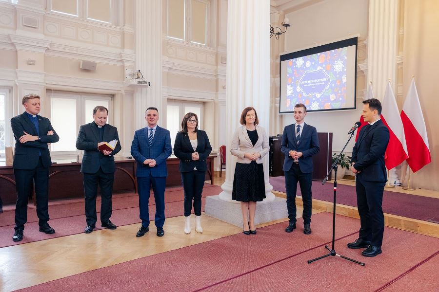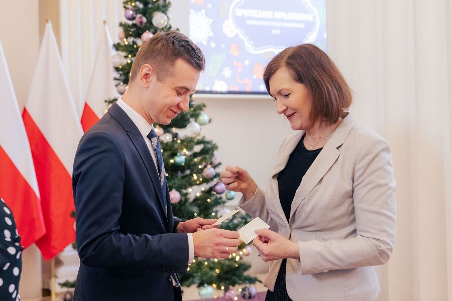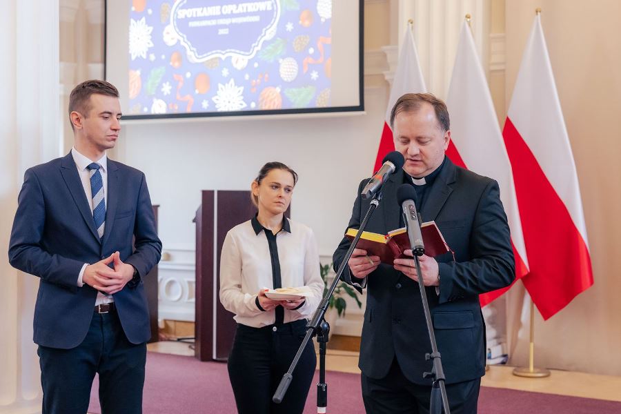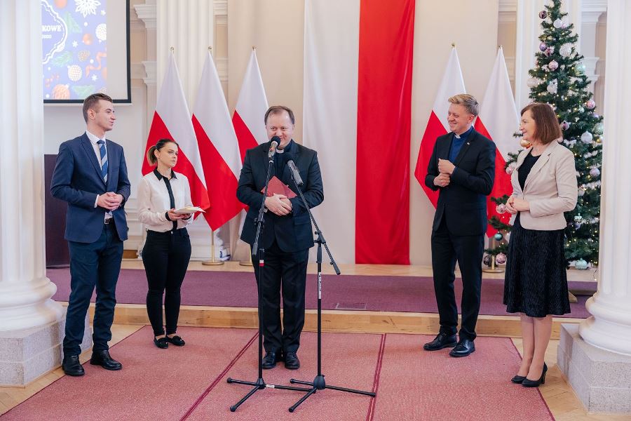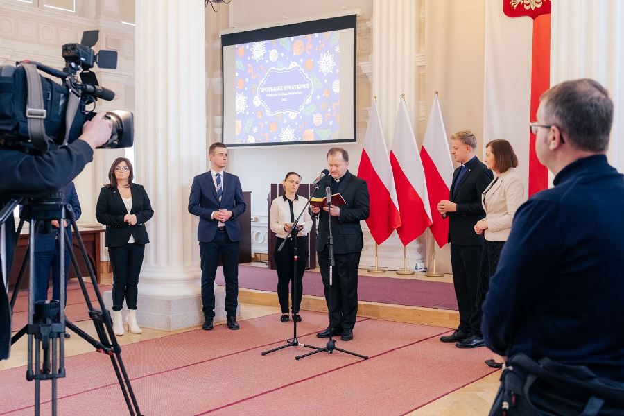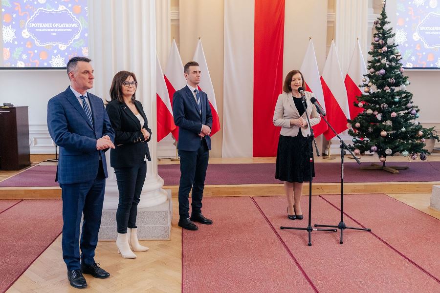 Dziennikarze lokalnych mediów, prasy, radia i telewizji, podzielili się opłatkiem na wigilijnym spotkaniu z podkarpackim wojewodą, Ewą Leniart; wicewojewodami - Jolantą Sawicką i Radosławem Wiatrem oraz Marcinem Zaborniakiem, dyrektorem generalnym Podkarpackiego Urzędu Wojewódzkiego. Uroczystość odbyła się w czwartek, 22 grudnia w PUW w Rzeszowie.