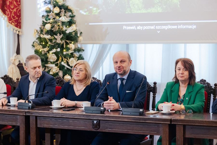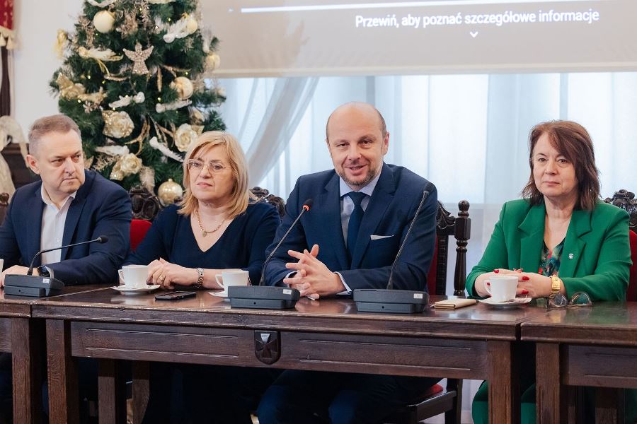 Konrad Fijołek, prezydent Rzeszowa oraz jego najbliżsi współpracownicy; Krystyna Stachowska, Jolanta Kaźmierczak i Dariusz Urbanik spotkali się w czwartek w rzeszowskim Ratuszu z przedstawicielami podkarpackich mediów na noworocznym spotkaniu. To już doroczna tradycja, którą podtrzymują także marszałek województwa oraz wojewoda podkarpacki.