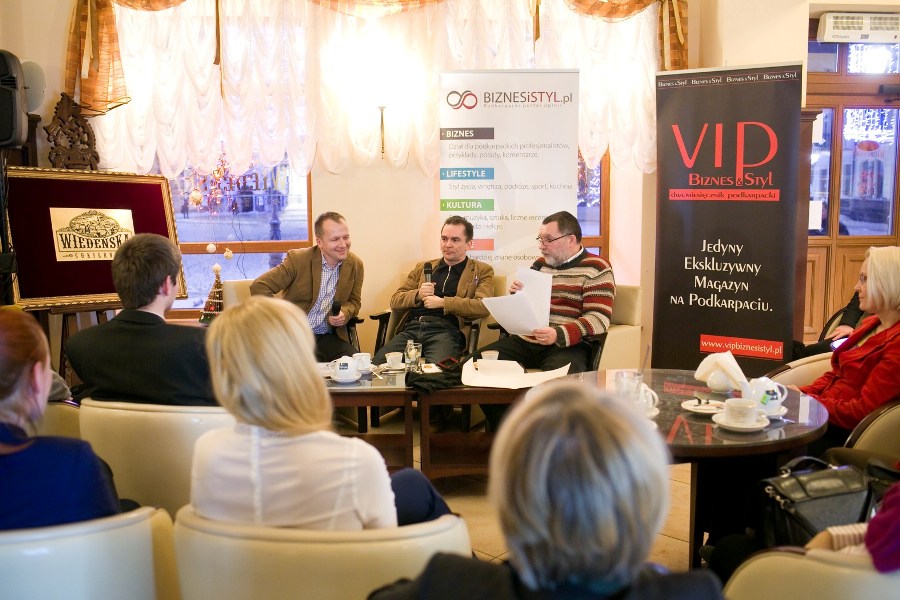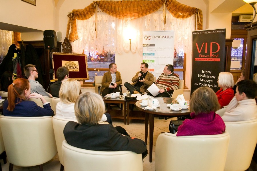 To przykładowe tematy, które w piątkowy wieczór rozważało kilkudziesięciu uczestników inauguracyjnego spotkania z cyklu BIZNESiSTYL.pl "Na Żywo”, zorganizowanego pod patronatem portalu BIZNESiSTYL.pl oraz magazynu VIP Biznes&Styl. Spotkanie odbyło się w Cukierni Wiedeńskiej Hotelu Ambasadorskiego na rzeszowskim Rynku. Przewodnikami po tematach związanych z poszukiwaniem harmonii, głębi i spełnienia oraz dobrych relacji z drugim człowiekiem, zarówno w życiu, jak i biznesie, byli Rafał Seremet, specjalista z zakresu promocji zdrowia i zdrowego trybu życia, autor książek i poradników z zakresu rozwoju wewnętrznego potencjału, twórca darmowego internetowego kursu relaksacji, kompozytor muzyki relaksacyjnej, terapeuta Shiatsu i Quigong, oraz Andrzej Lesiak, przedsiębiorca działający w branży IT, który od kilku lat współpracuje z Amerykaninem Davidem Neenanem, asystując w polskiej edycji legendarnych warsztatów Business&You. Obaj panowie prowadzą także swoje blogi na naszym Portalu..