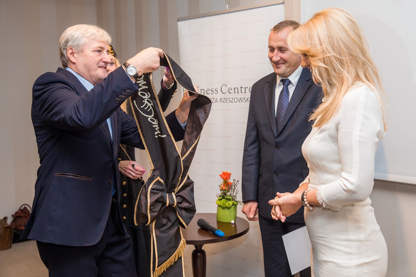 W Akcji Charytatywnej "Okruszek" znalazł się też jeszcze jeden rzeszowski akcent - szarfę ambasadora opracowała rzeszowska projektantka mody, Marta Mizera.  Jej kolorystyka jest zgodna z symboliką barw "Okruszka" i dominuje w niej brąz jako symbol ubóstwa oraz złoto nawiązujące do bogactwa. Wszyscy kolejny ambasadorzy akcji będą dekorowani takimi samymi szarfami jak ta Grażyny Torbickiej z pracowni Marty Mizery.
