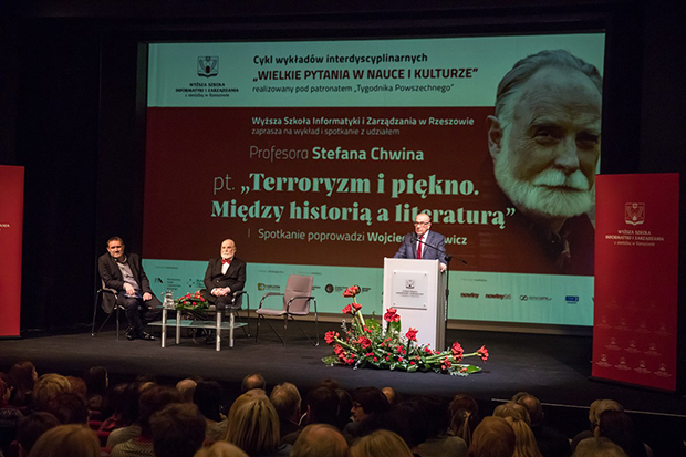 Wykład prof. Chwina odbył się w poniedziałek, 19 lutego o godz. 17, w Teatrze im. Wandy Siemaszkowej w Rzeszowie. Spotkanie poprowadził Wojciech Bonowicz - redaktor i felietonista "Tygodnika Powszechnego". Wykład jest organizowany w ramach II edycji cyklu wykładów popularnonaukowych „Wielkie pytania w nauce i kulturze", realizowanego przez Wyższą Szkołę Informatyki i Zarządzania, pod patronatem "Tygodnika Powszechnego".