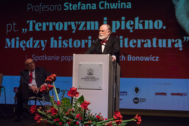 Tak rozpoczął się ponad godzinny wykład profesora, w którym zmierzył się on z tematyką rzadko omawianą w historii literatury i jeszcze rzadziej w naszej codzienności. Prof. Stefan Chwin zaznaczył, że polska kultura zetknęła się na dobre z terroryzmem na przełomie XVIII i XIX wieku w wyjątkowo niesprzyjających okolicznościach, podczas trzech zaborów. Wielokrotnie przywoływał znane i mniej znane dzieła literackie oraz stosunek pisarzy do terroryzmu. Nawiązywał też do ważnych wydarzeń historycznych, jak np. zrzucenie bomby na Hiroszimę. - Czy zrzucenie bomby o godzinie ósmej rano na miasto, które nie miało strategicznego znaczenia w działaniach wojennych, można nazwać atakiem terrorystycznym? - pytał.