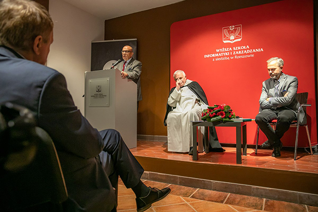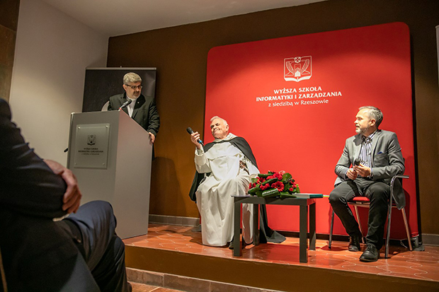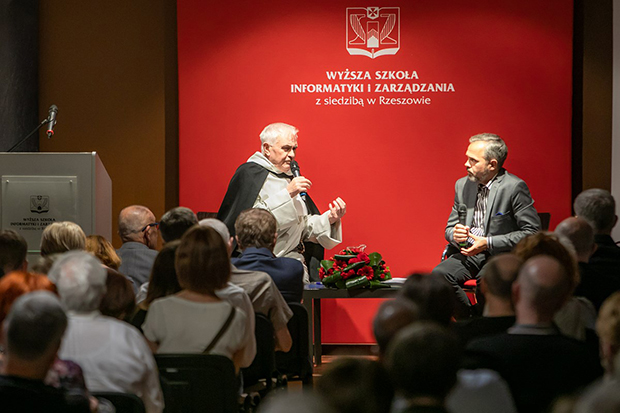 Dr Wergiliusz Gołąbek, rektor WSIiZ na wstępie do rozmów w rzeszowskim Klasztorze Dominikanów zwrócił uwagę na głęboki humanizm, zakorzenienie w Ewangelii i szacunek do wolności w myśli o. Wiśniewskiego. - Przeraża mnie, że niektórzy tego nie rozumieją, bo to oznacza brak zrozumienia istoty chrześcijaństwa - podkreślił dr Gołąbek i zacytował słowa prof. Tadeusz Pomianka z posłowia do książki „Nigdy nie układaj się ze złem”, wyrażające nadzieję, że postawa i niezłomność o. Wiśniewskiego będą pomocne szczególnie młodemu pokoleniu, „by nie zgubiło busoli wartości w tych nieobliczalnych czasach.”