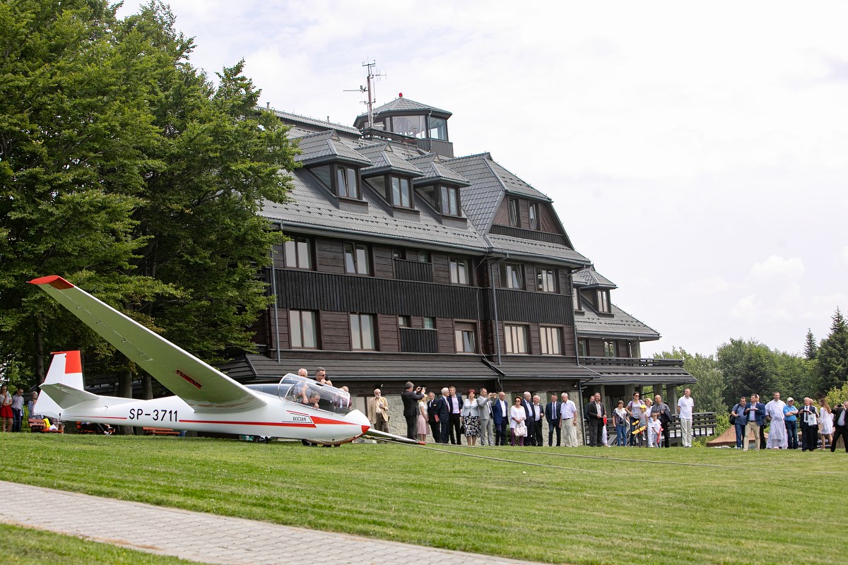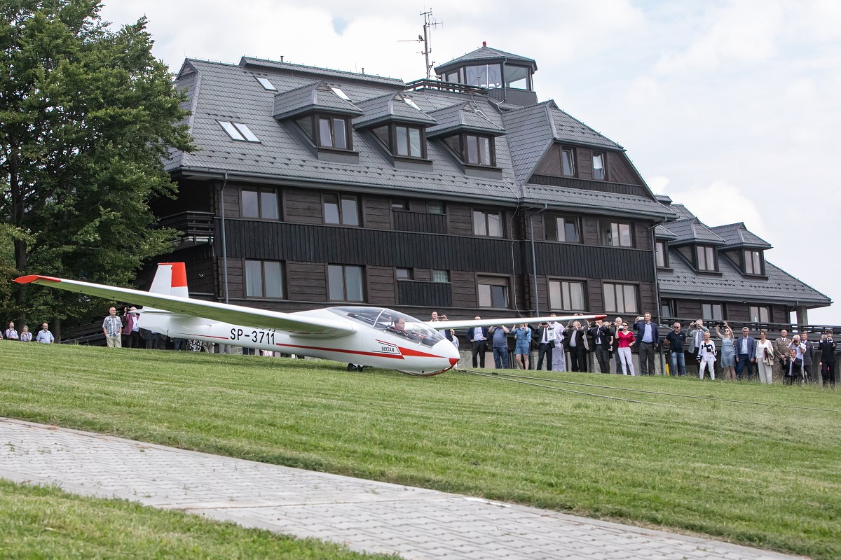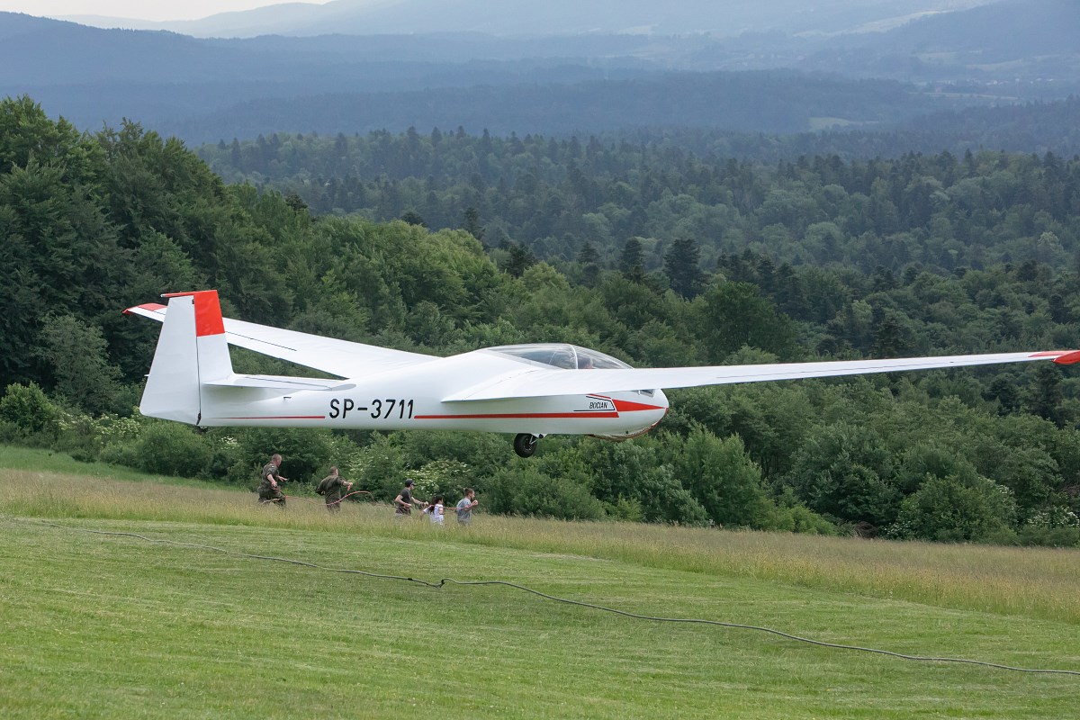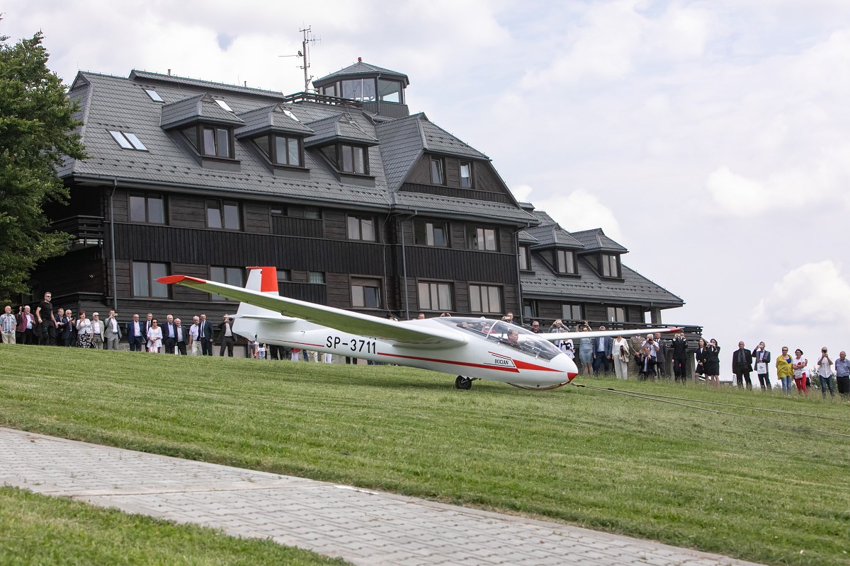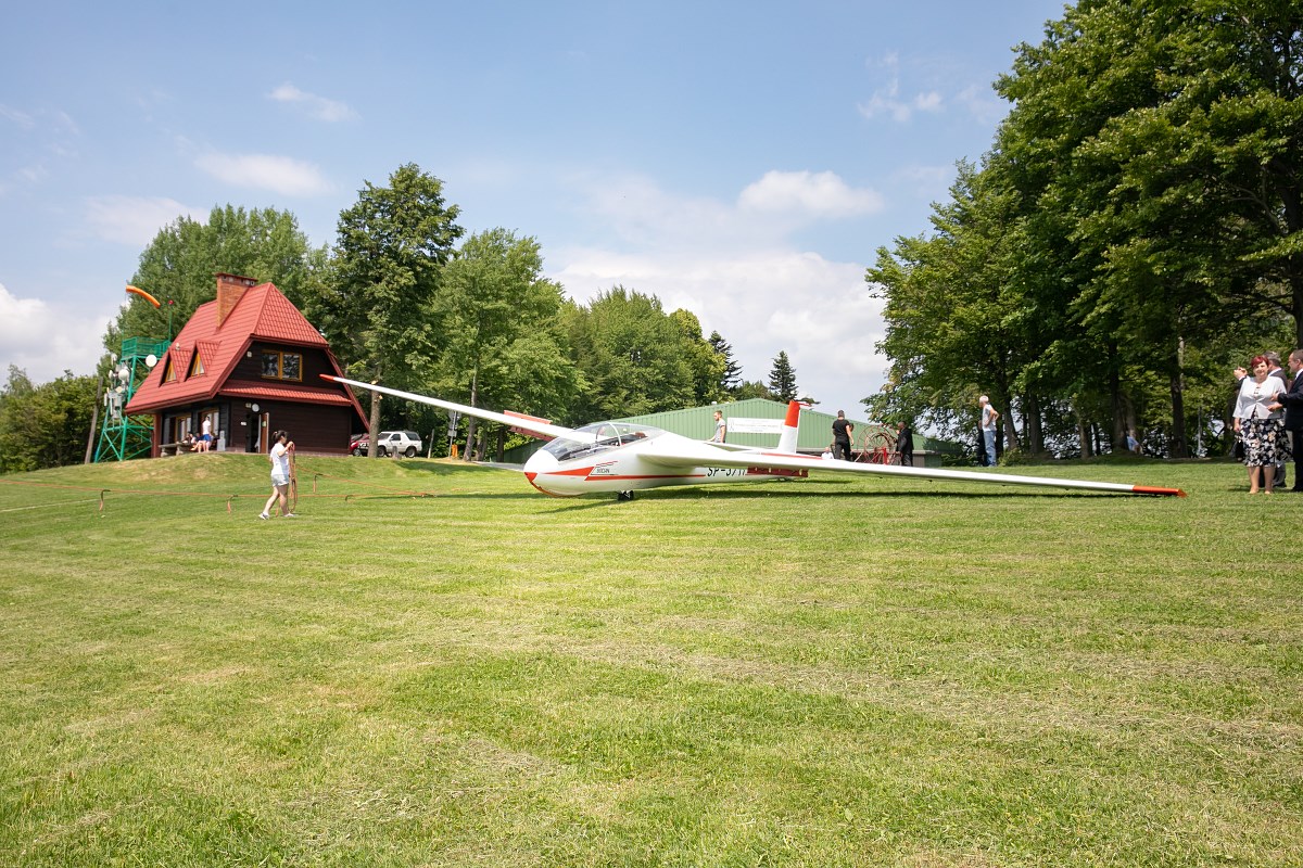 Start szybowca z lin gumowych sprzed Akademickiego Ośrodka Szybowcowego Politechniki Rzeszowskiej. Fot. Tadeusz Poźniak