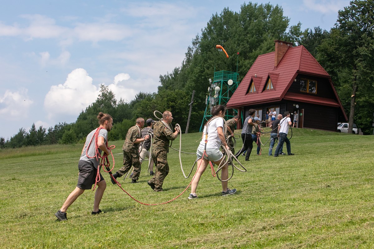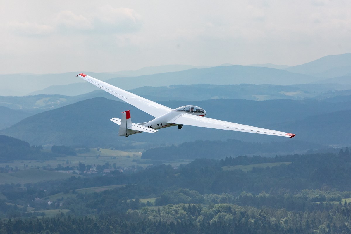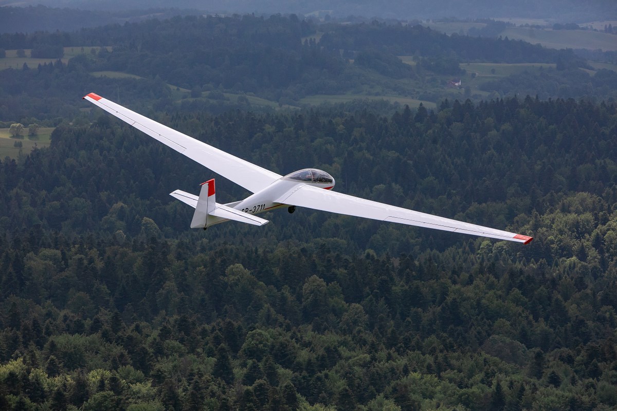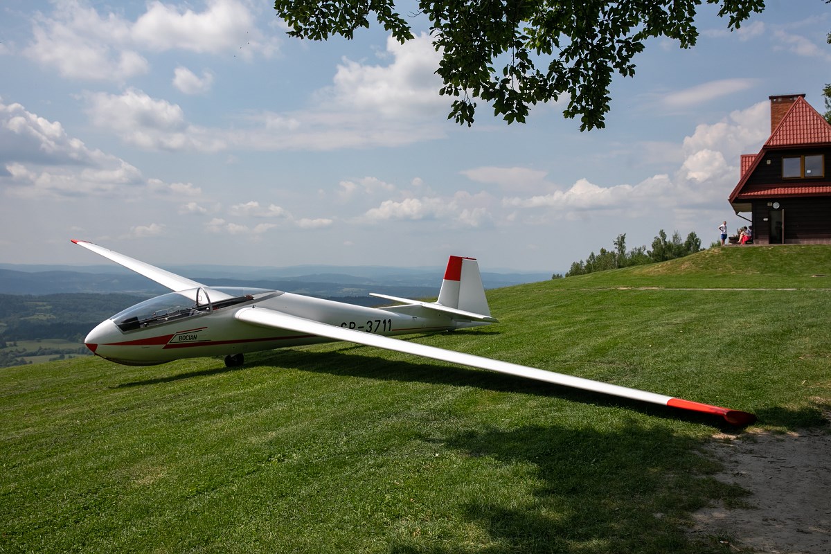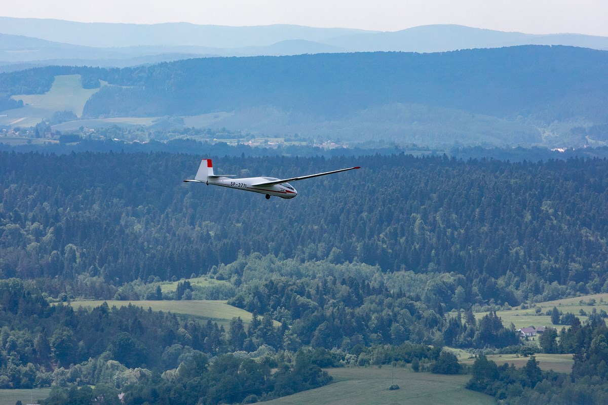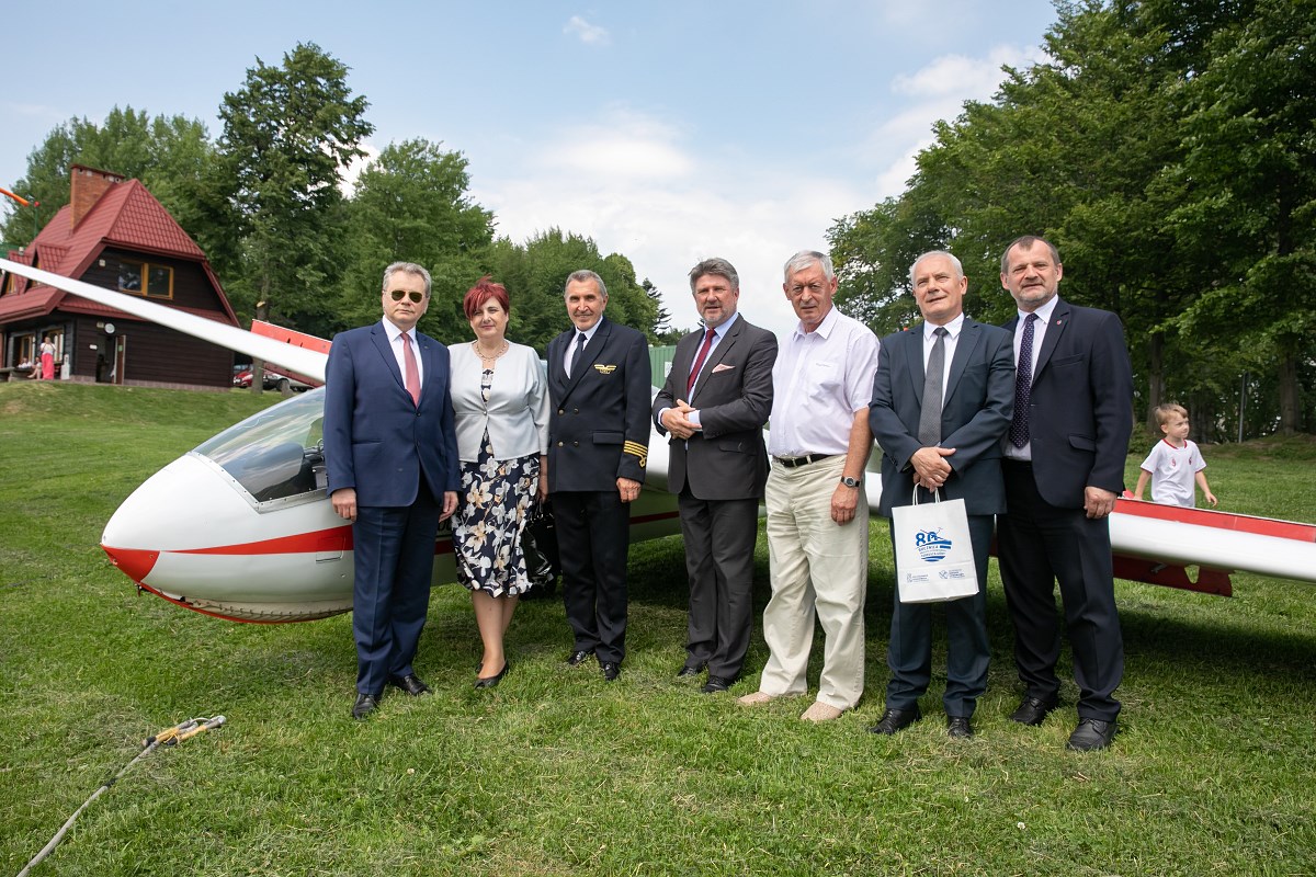 Start szybowca z lin gumowych sprzed Akademickiego Ośrodka Szybowcowego Politechniki Rzeszowskiej. Fot. Tadeusz Poźniak