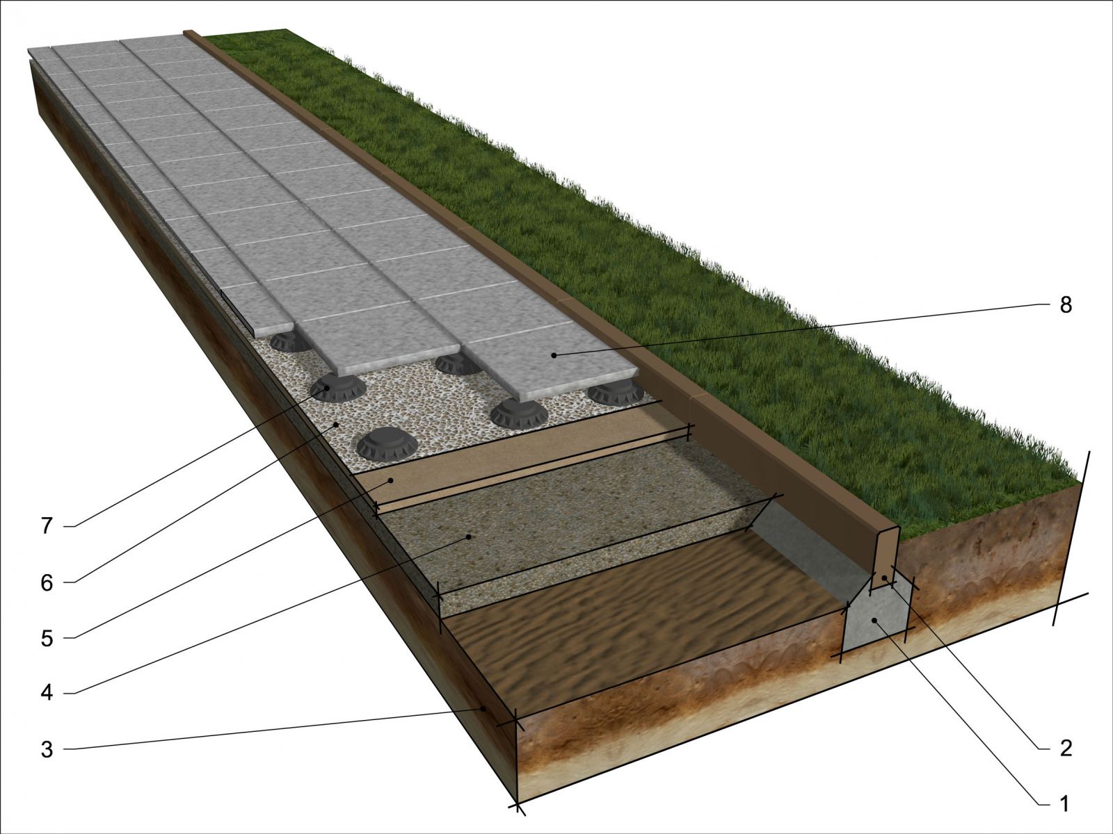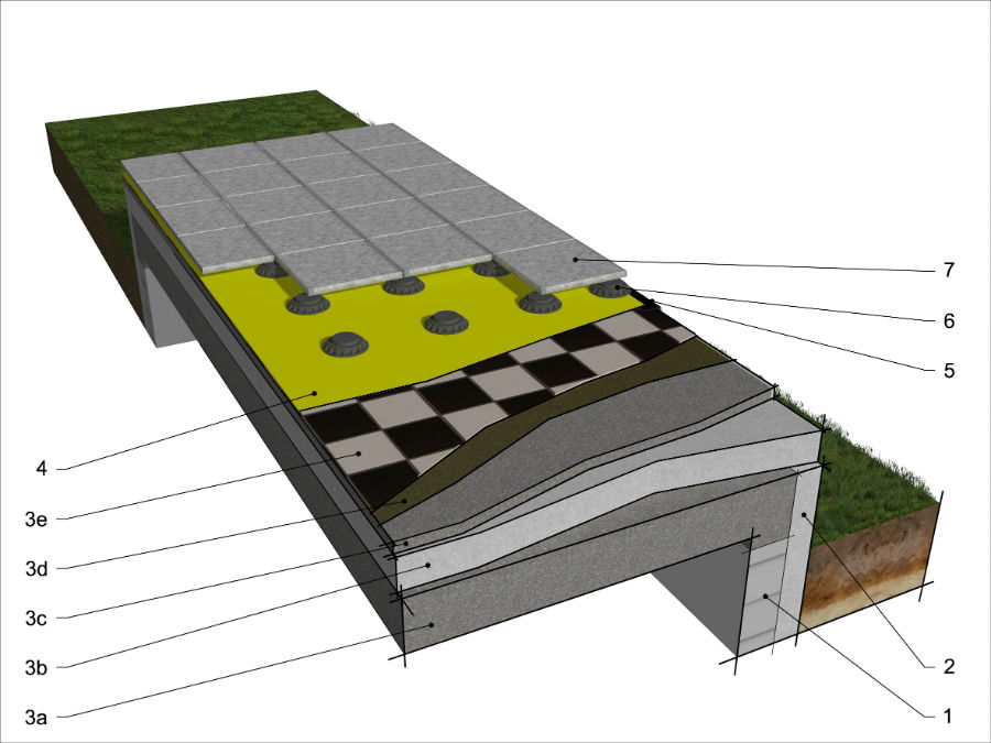 Rozpocznijmy jednak od sytuacji znacznie prostszej, czyli budowy nowego tarasu na gruncie. W tym wypadku postępowanie jest w zasadzie analogiczne jak przy nawierzchniach krytych kostką brukową: dobrze przygotowana i zagęszczona podbudowa z właściwie wyprofilowanymi spadkami, na której układane są wsporniki płyt tarasowych i same płyty. Jednak już w tym przypadku ujawniają się zalety tarasu wentylowanego. Nawierzchnia nie wymaga pracochłonnego układania, wibrowania i fugowania. W dodatku wszelkie nierówności (czy to powstałe przy przygotowywaniu podbudowy, czy później) można w każdej chwili usunąć zwyczajnie podnosząc płyty i regulując wysokość wsporników. Podobnie w wypadku awarii czy też konieczności przeróbki biegnących pod tarasem instalacji, które dzięki technologii tarasu wentylowanego można przeprowadzić bardzo prosto i bez pozostałych na nawierzchni śladów po jej zrywaniu i powtórnym układaniu.