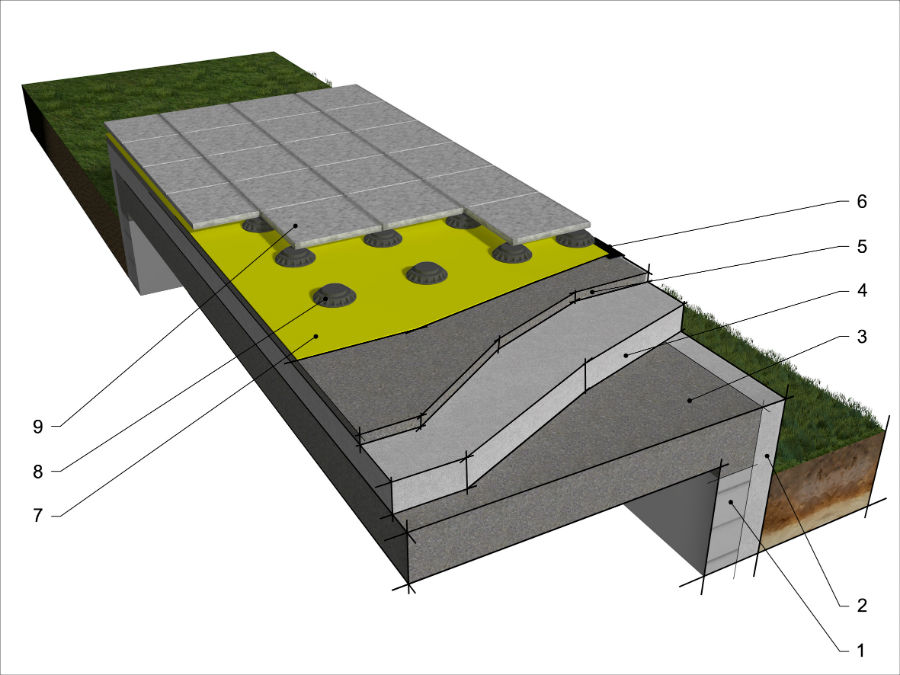 Taras wentylowany na płycie stropowej nad piwnicą (rys. Buszrem).