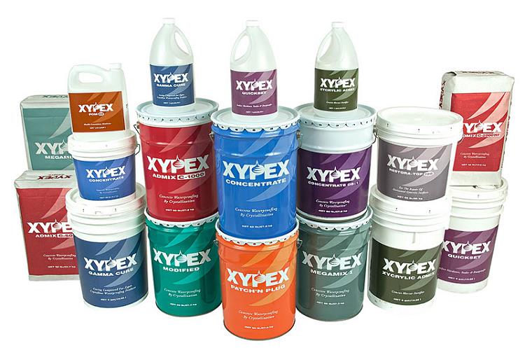 Xypex to technologia krystalizacji, dzięki której konstrukcje betonowe stają się nieprzepuszczalne zarówno dla wody jak i innych cieczy. Technologia ta jest oparta na kombinacji aktywnych i nietoksycznych chemikaliów, które wraz z produktami ubocznymi hydratacji  cementu w betonie tworzą unikalny rodzaj kryształów. Kryształy te są nierozpuszczalne i dzięki temu powodują trwałe uszczelnienie porów, kapilar i pęknięć w betonie co zabezpiecza przed działaniem wody i wielu roztworów chemicznych. Nawet wysokie ciśnienie hydrostatyczne nie wpływa na szczelność betonu z Xypex-em. Przy każdym kontakcie z wodą, Xypex uaktywnia się i odnawia procesy krystalizacji. Charakteryzuje go wysoka skuteczność i nietoksyczność (posiada atest PZH).