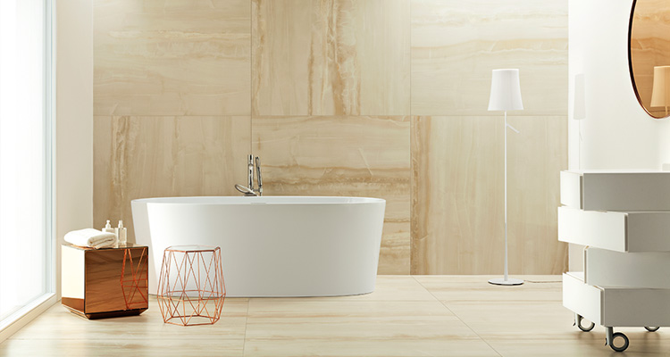 Płytki o tak dużych formatach to dziś wiodący trend w świecie designu łazienkowego.