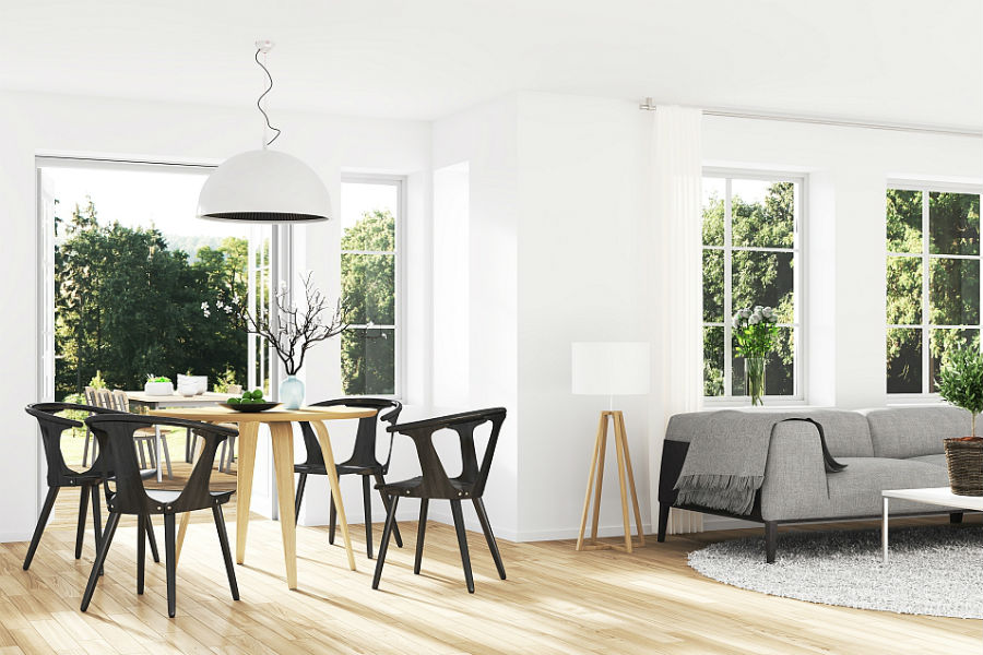Wybór wzorów i kolorów podłogowych paneli laminowanych jest ogromny. Najczęściej wybieramy panele w jasnych odcieniach, do czego w dużej mierze przekonują nas względy praktyczne. Zabrudzenia takie jak piasek czy kurz są mniej widoczne niż na ciemnej powierzchni, co zmniejsza częstotliwość sprzątania. Jasna podłoga jest przy tym rozwiązaniem uniwersalnym. Sprawdza się niezależenie od stylu wnętrza, pozwala skorzystać z większego wachlarza możliwości doboru mebli oraz dodatków i łatwo dopasowuje się do zmian. Jest idealna do małych przestrzeni, gdyż optycznie je powiększa.