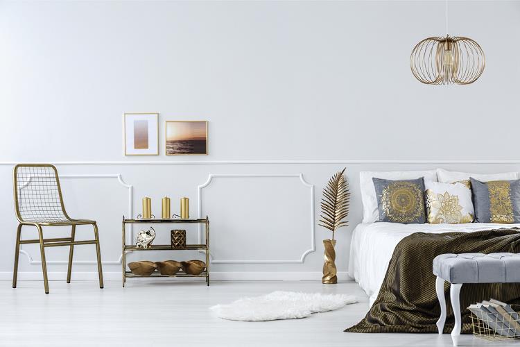 To on przyniósł po pierwsze ażurowe meble o konstrukcji z pozłacanych prętów. Po drugie obicia, zasłony glamour oraz poduszki w tym stylu (nieraz bogato zdobione) z połyskliwego aksamitu. I po trzecie świeżą paletę barw z istotną rolą pudrowego różu, bordo, granatu oraz ciemnej zieleni. Te efektowne kolory wpisują się dziś w styl glamour równie dobrze co surowe kontrasty czerni z bielą oraz słodkie pastele.