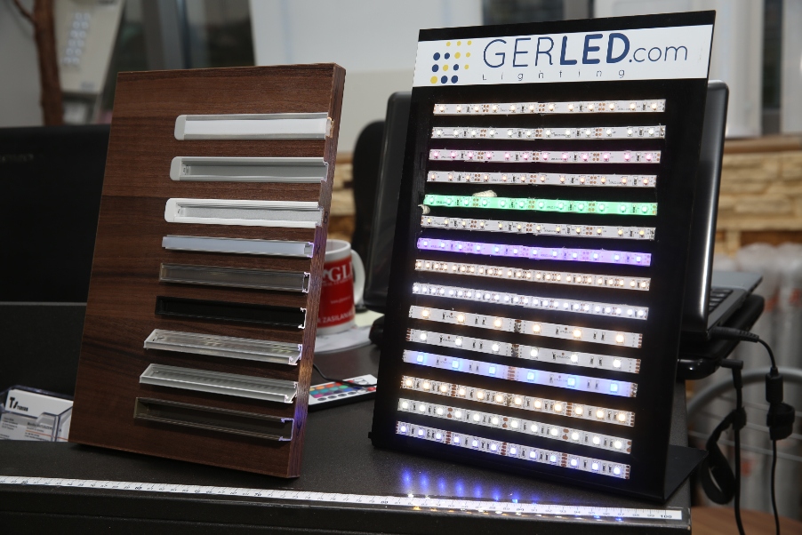 W firmie SCANDTERM dostępne jest także specjalne oświetlenie dla ekspozycji, które pozwala uzyskać temperaturę barwową światła dziennego. Jest to temperatura 5700K, dzięki której uzyskuje się najwyższy współczynnik oddawania barw. Prezentacja wystawy w takim świetle umożliwia pokazanie prawdziwego koloru danego produktu oraz pozwala uniknąć reklamacji związanych z rozbieżnością kolorystyczną w sklepie i w naturalnym świetle dziennym.