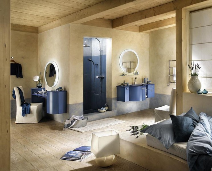 Salon kąpielowy powinien być wyposażony w najwyższej klasy sprzęt do kąpieli i odnowy biologicznej: wanny z hydromasażem, kabiny prysznicowe czy minisauny. Obowiązkowo musi się w nim znaleźć także umywalka połączona z toaletką oraz sedes i bidet, jednak wyraźnie oddzielone od strefy przeznaczonej do relaksu. Akcesoria w salonie kąpielowym powinny prezentować najwyższy poziom technologii, jednak nie dla podniesienia własnego prestiżu z faktu posiadania tych rzeczy, lecz by korzystanie z nich umiliło i podniosło komfort kąpieli. Kabiny prysznicowe, z których trudno zrezygnować ze względu na funkcjonalność i wygodę, dziś w niewielkim stopniu przypominają narożne, plastikowe kabiny sprzed lat. Kabiny są wyposażone m.in. w panel masażowy, wygodne siedziska, głośniki audio, radio, a nawet telewizor. Często też posiadają generator pary, który pozwala poczuć się jak w saunie. Coraz częściej w kabinach nie montuje się popularnego tradycyjnego brodzika - zastępuje się go idealnie płaską konstrukcją, wbudowaną w posadzkę, ale należy wówczas pamiętać o przestrzeni na syfon.