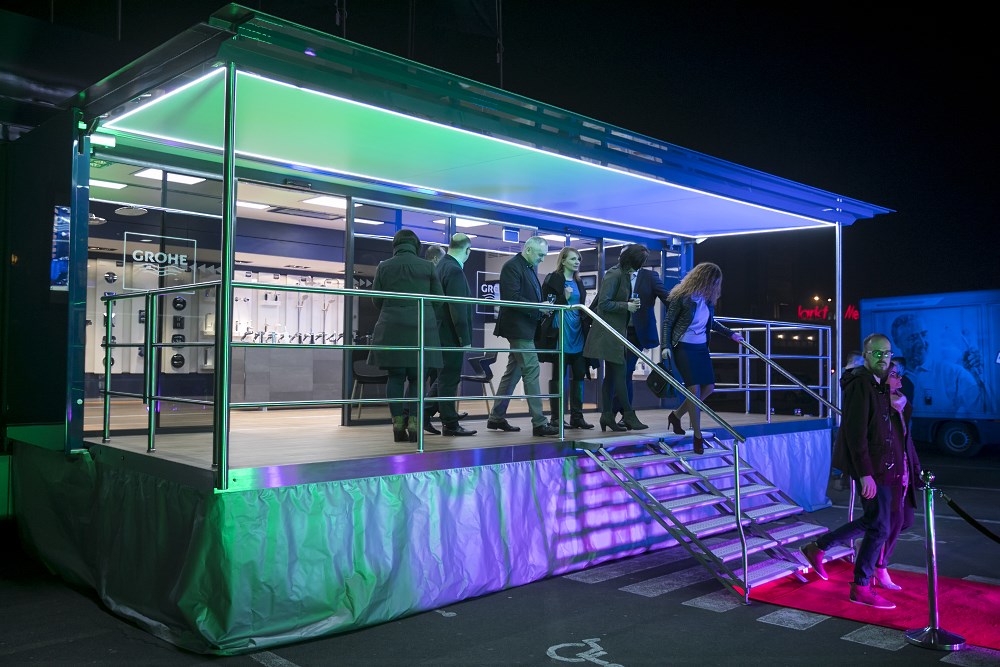 Niezwykły wieczór w Rzeszowie przygotowała dla architektów firma Grohe i BOZ. Przy ul. Geodetów, przed Salonem Łazienek BOZ stanął naszpikowany najnowszą technologią TIR Grohe. Jak w filmie Transformers – po naciśnięciu kilku guzików – przeobraził się w nowoczesny salon z ruchomymi drzwiami i ekspozycją pełną hitów Grohe. Z kranów leciała gazowana woda i każdy mógł sprawdzić jak działa myjąca toaleta. Doskonałość produktów szła w parze z atrakcjami gali i występem Anny „Boskiej” Filipowskiej. Pokaz na kielichu wody w wykonaniu akrobatki znanej z finału „Mam Talent” był równie perfekcyjny jak łazienkowe rozwiązania marki Grohe.