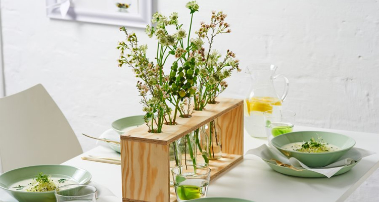 Ostatnim krokiem jest skręcenie ze sobą czterech wyciętych wcześniej ze sklejki lub drewna elementów. Przy pomocy Bosch Bosch EasyDrill 12-2 i ośmiu wkrętów do drewna scal te elementy ze sobą – tak, aby utworzyły stojak. Następnie napełnij butelki wodą, wsuń je w wycięte otwory i umieść w nich świeże kwiaty.