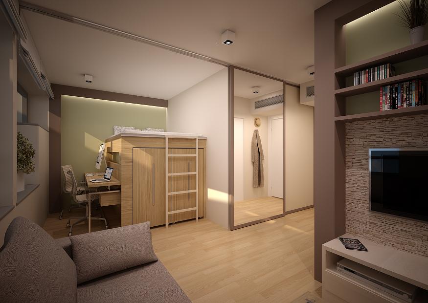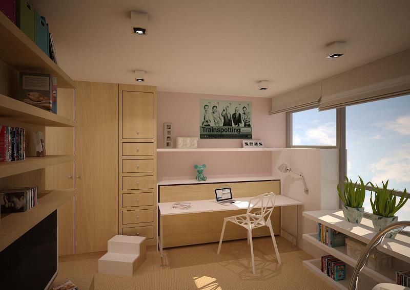 Proszę bardzo. Łóżko na podwyższeniu, pod którym znajduje się szafa ubraniowa lub podest z miejscem do pracy, spod którego można łóżko wysunąć. Sprawdzają się także meble, który w zależności od potrzeb staje się biurkiem albo łóżkiem.