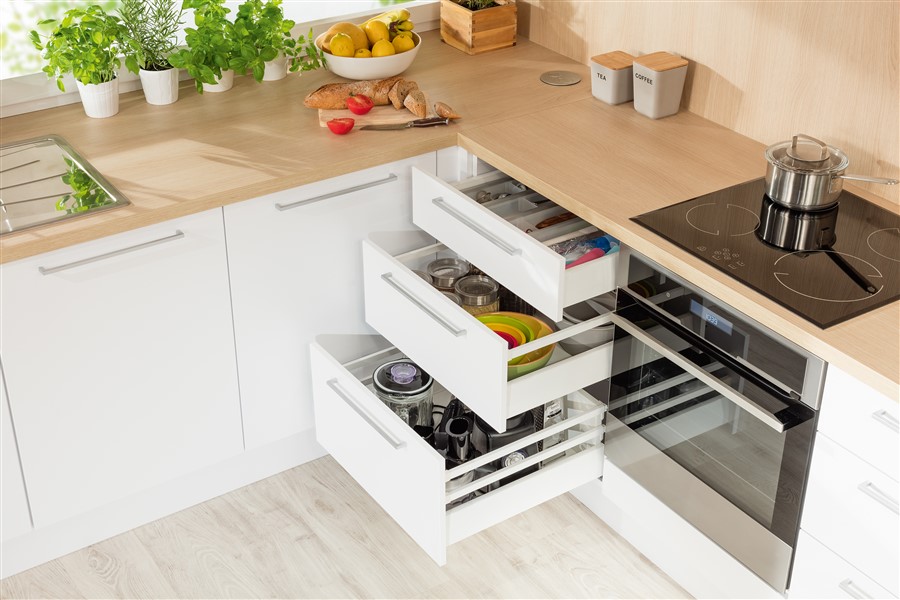 Minimalizm stawia na duże połacie gładkich frontów kuchennych, za którymi można schować nie tylko garnki, talerze, roboty i mieszadła, ale także piekarnik i lodówkę. Warto zaznaczyć, że styl, ukrywając sprzęt i dodatki, nie zabiera niczego z funkcjonalności. – Szuflada Matrix P w wersji push-to-open i cichym zamykaniem z nowym mechanizmem pozwala na minimalistyczne aranżacje – wskazuje Michał Kichler z Häfele. – Dzięki najnowszym rozwiązaniom fronty bezuchwytowe zamykają się bardzo cicho. Szuflada wyróżnia się dużą pojemnością i udźwigiem. Bez problemu zmieszczą się w niej akcesoria i cięższy sprzęt kuchenny codziennego użytku – podkreśla.