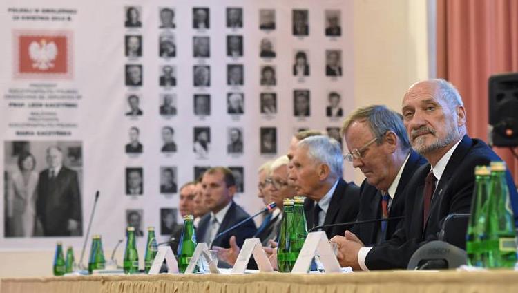 Radek Pietruszka / PAP Warszawa, 15.09.2016. Od prawej: minister obrony narodowej Antoni Macierewicz, przewodniczący podkomisji smoleńskiej dr inż. Wacław Berczyński i doradca komisji inżynier lotniczy z Wielkiej Brytanii, były szef Centrum Bezpieczeństwa Lotnictwa Cranfield College of Aeronautics, konsultant ds. bezpieczeństwa lotniczego Frank Taylor, podczas konferencji prasowej przedstawicieli podkomisji ds. zbadania katastrofy smoleńskiej, 15 bm. w Warszawie.