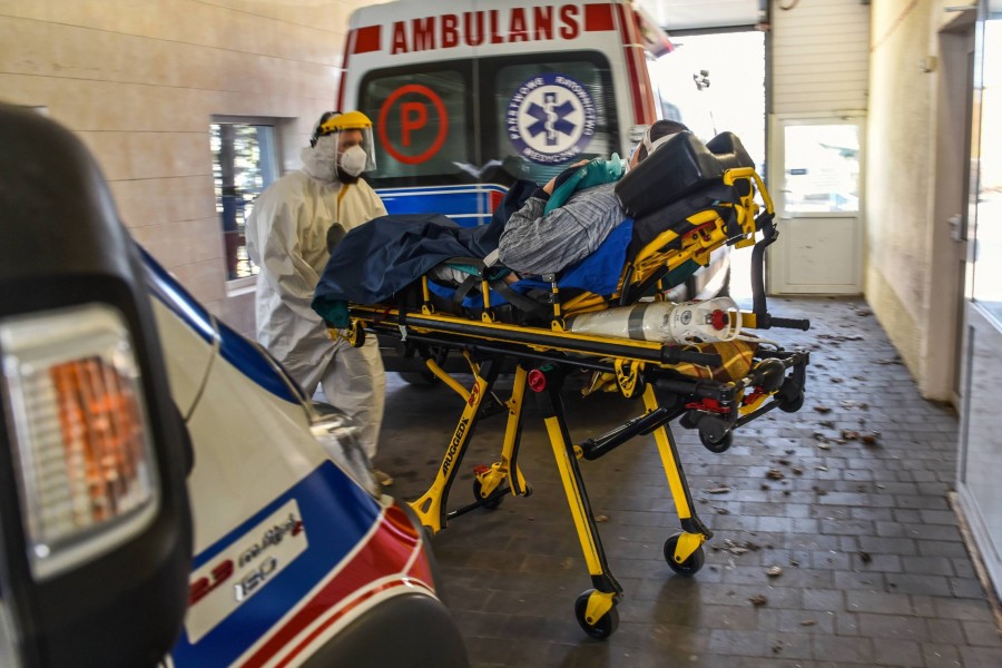 Transport pacjenta na szpitalny oddział ratunkowy w Samodzielnym Publicznym Zakładzie Opieki Zdrowotnej MSWiA w Lublinie. Fot. Wojtek Jargiło/PAP