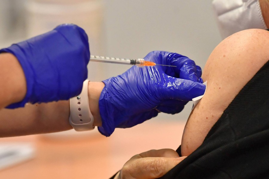 Szczepienie przeciw Covid-19 w punkcie szczepień szpitala tymczasowego na Stadionie PGE Narodowym w Warszawie. Fot. Radek Pietruszka/PAP