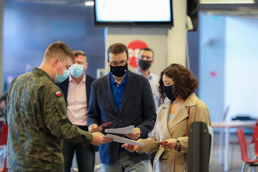 Premier Mateusz Morawiecki wraz z małżonką przyjęli w sobotę pierwszą dawkę szczepionki firmy AstraZeneca - przekazała kancelaria premiera.