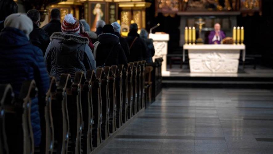 Fot. DAREK DELMANOWICZ / PAP Przemyśl, 17.02.2021. Wierni podczas mszy świętej w bazylice archikatedralnej w Przemyślu, 17 bm. w Środę Popielcową. Dzisiaj w Kościele katolickim rozpoczyna się Wielki Post.