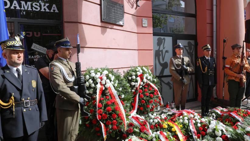 Uroczystość złożenia kwiatów pod tablicą upamiętniającą podpisanie przez płk. dypl. Antoniego Chruściela "Montera" rozkazu rozpoczęcia Powstania Warszawskiego, 1 bm. w Warszawie. Fot. Albert Zawada/PAP