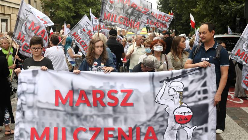 Marsz Milczenia '44 w ramach obchodów 77. rocznicy wybuchu Powstania Warszawskiego, 1 bm. w Warszawie. Marsz upamiętniający ofiary powstania wyruszył z ul. Jana Kilińskiego. Fot. Tomasz Gzell/PAP