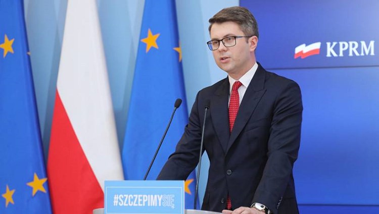 Fot. PAP/Paweł Supernak Warszawa, 04.08.2021. Rzecznik rządu Piotr Mueller podczas konferencji prasowej w siedzibie KPRM w Warszawie, 4 bm. Konferencja dot. m.in. nowych przepisów podatkowych.